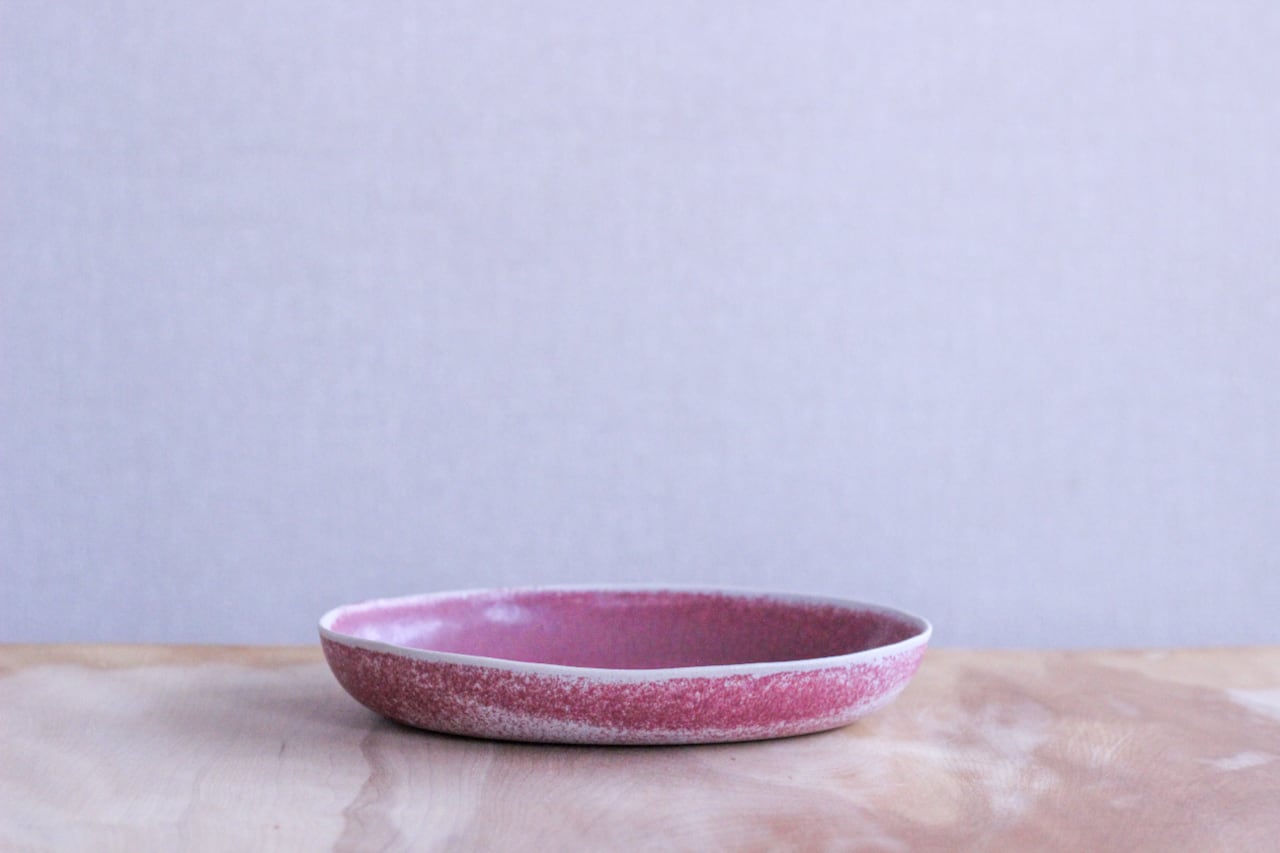 楕円皿で、食卓に優雅でありながら使いやすい美しさを添えます。この楕円皿は、ピンク色な釉薬が魅力的で、どんな料理とも調和し、穏やかな雰囲気を演出します。使いやすいサイズ感が日常的な食事から特別なおもてなしまで幅広く活用できることでしょう。手作りのため、一つ一つが独自の風合いを持ち、見る人を惹きつける魅力が詰まっています。ぜひ、お好きなお料理を盛り付けて、この楕円皿で心豊かな食卓をお楽しみください。