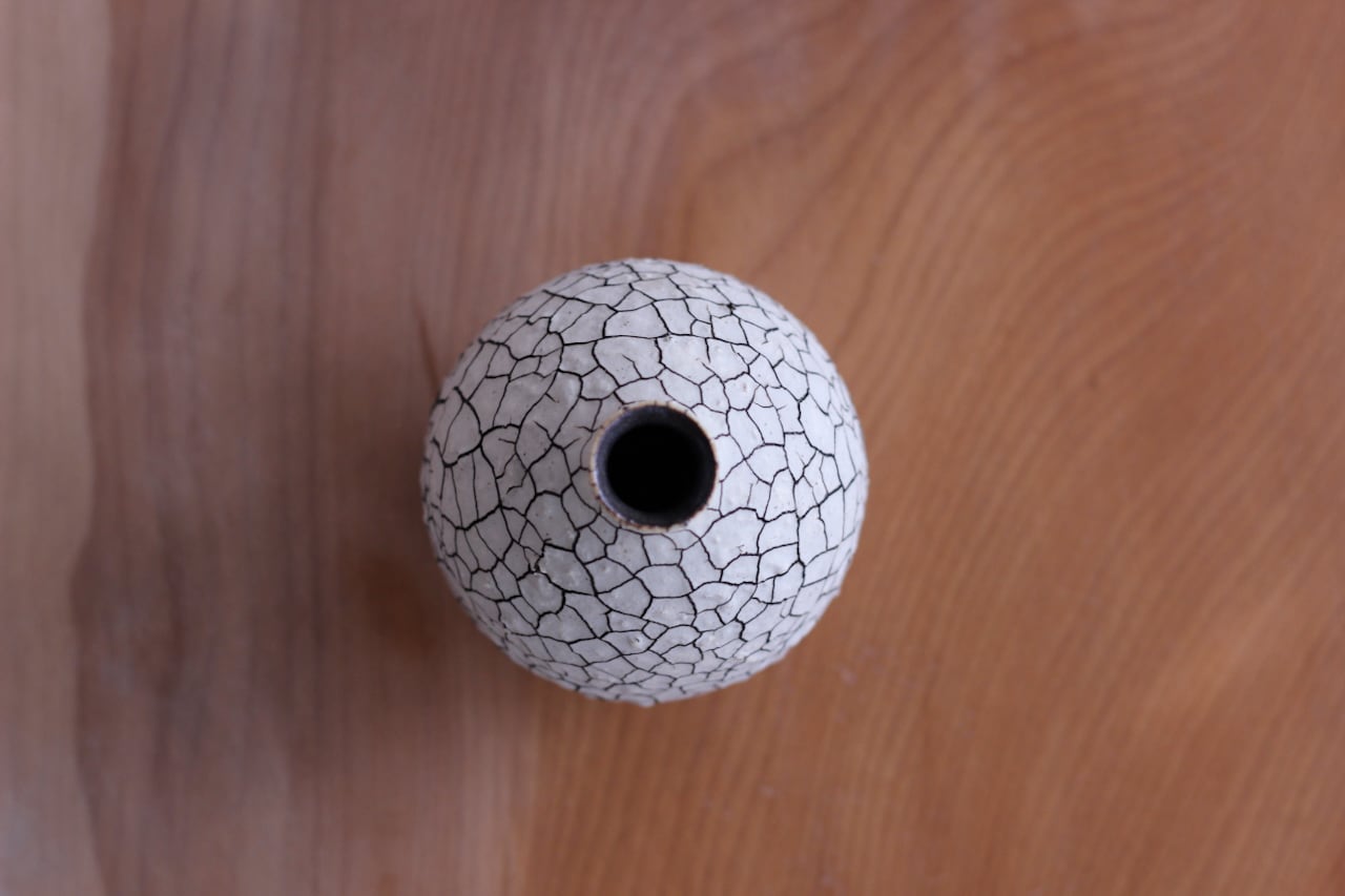 自然な雰囲気でお部屋を彩る、とっくり型花器。白地(ツヤなし)にヒビ模様が入っているのでアンティーク感があり、存在感のある一輪挿しになります。小さいサイズなので玄関先やトイレなどにも置きやすく、お部屋をより華やかにしてくれます。